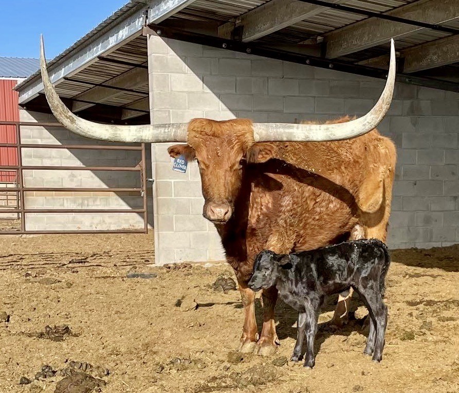 Her Mr. Happy bull calf is really brindling already.